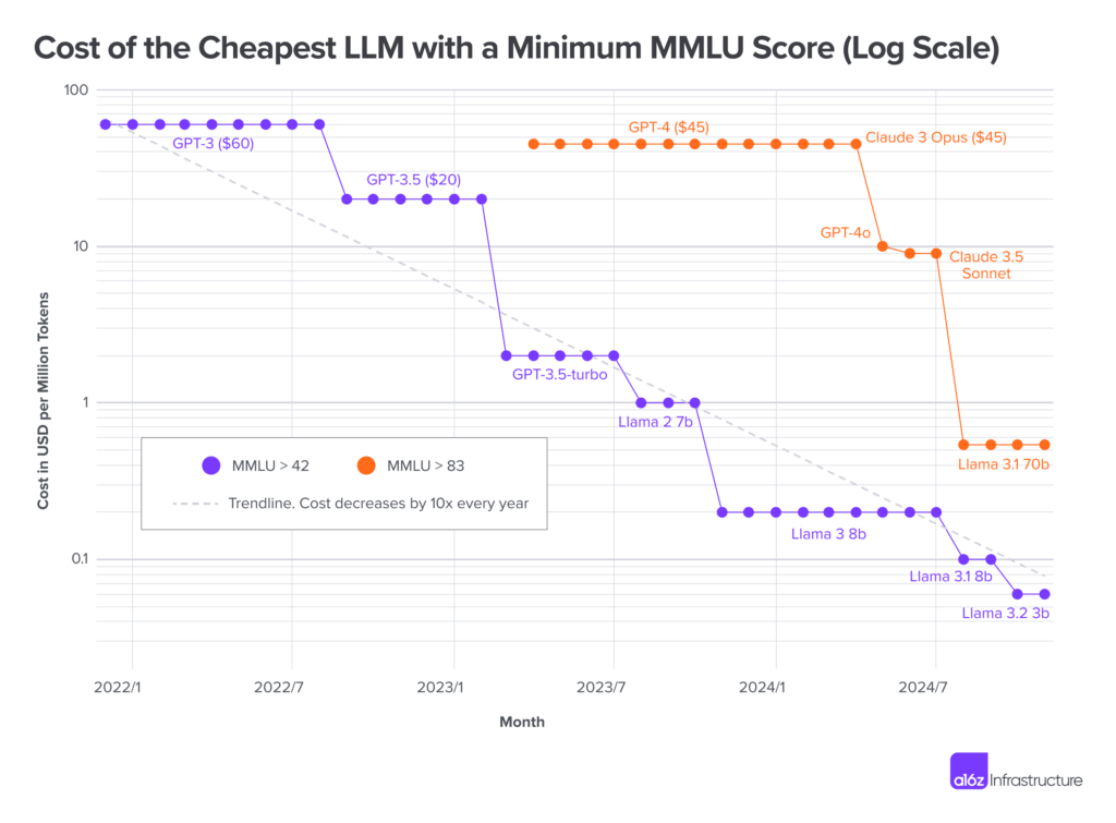 Cost of intelligence dropping exponentially: As AI capabilities improve while costs plummet, an AI-native company can capture exponentially growing efficiency gains. Once the company is architected correctly, the AI readiness poises the business to take full advantages as it gets 10x better next year.