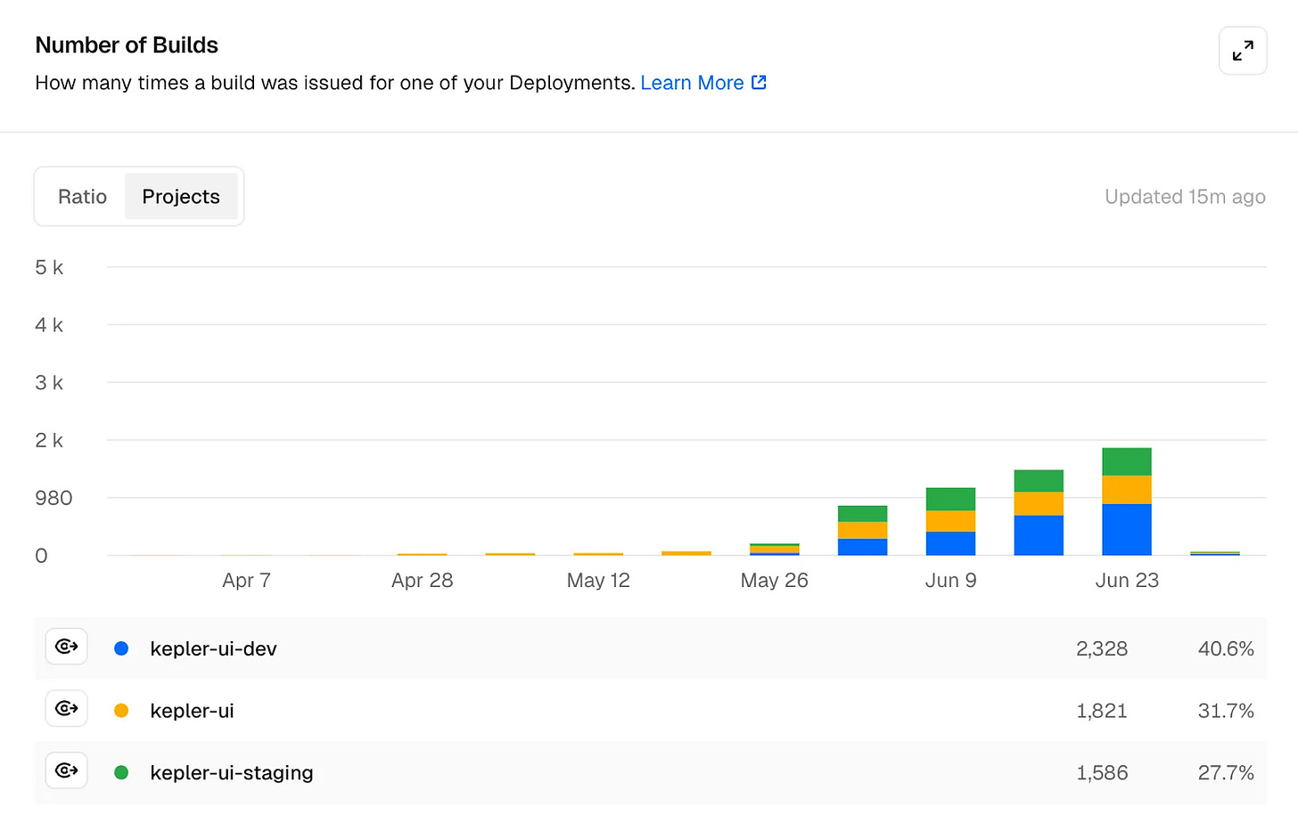 As a result, our deployment frequency (number of frontend and backend builds) is growing rapidly:
